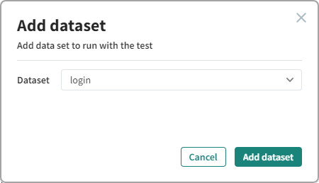 Before using datasets, you must upload a dataset file, assign it a name, and link it to an application. You can then assign the dataset to tests by selecting its name.
