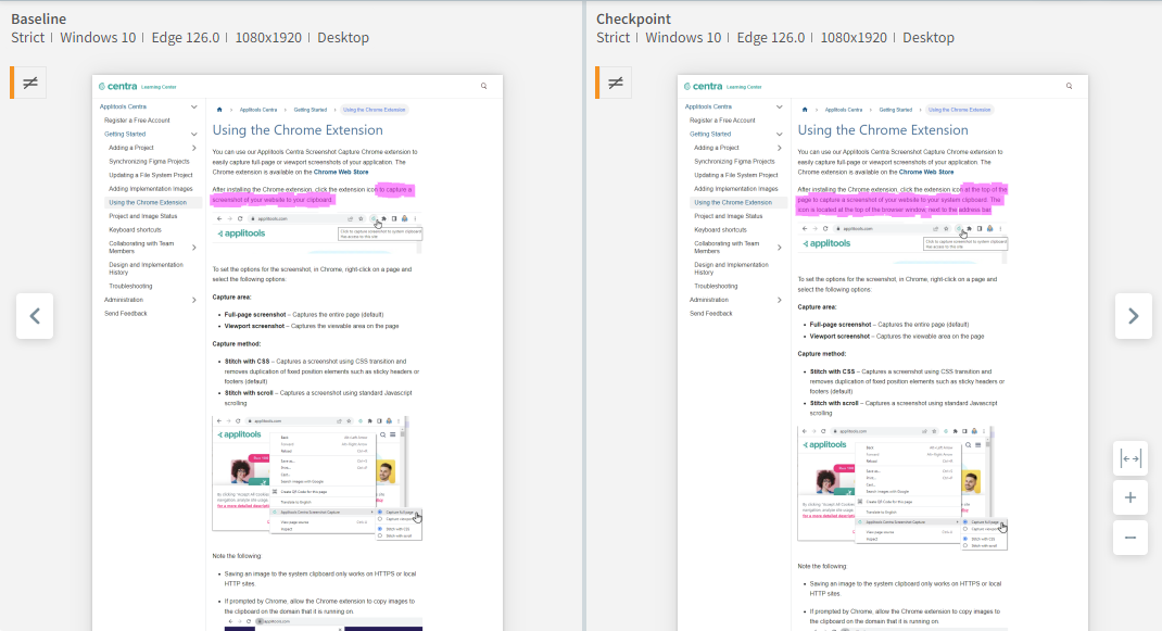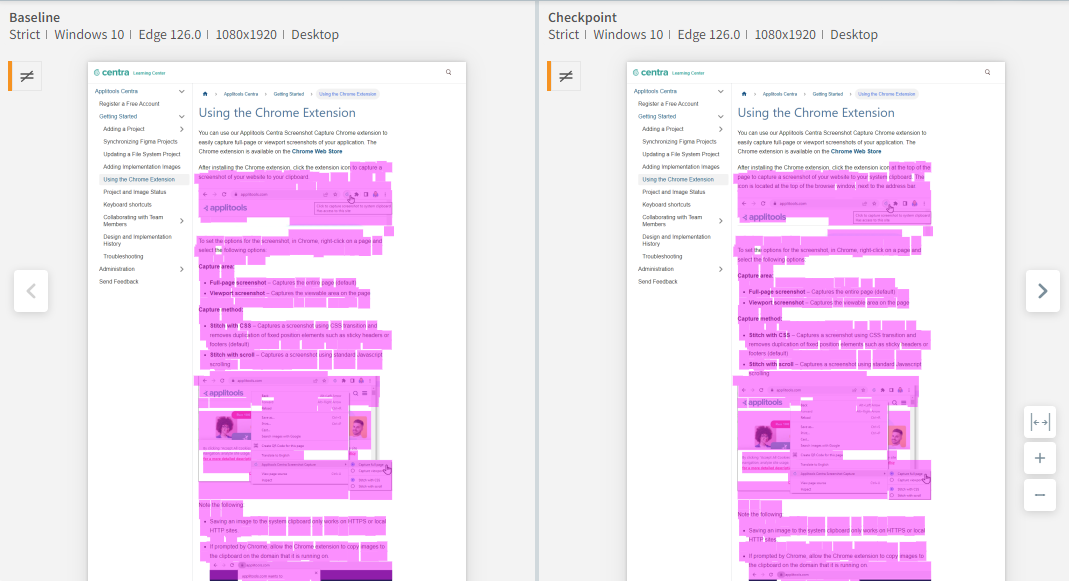 For example, if a paragraph has extra text or an image size increases, the entire page below that paragraph or image may be pushed down by a few pixels. However, apart from being displaced vertically, there may not be any other changes. This option marks a diff only in the paragraph or image with the change and ignores other changes caused by the vertical shift.