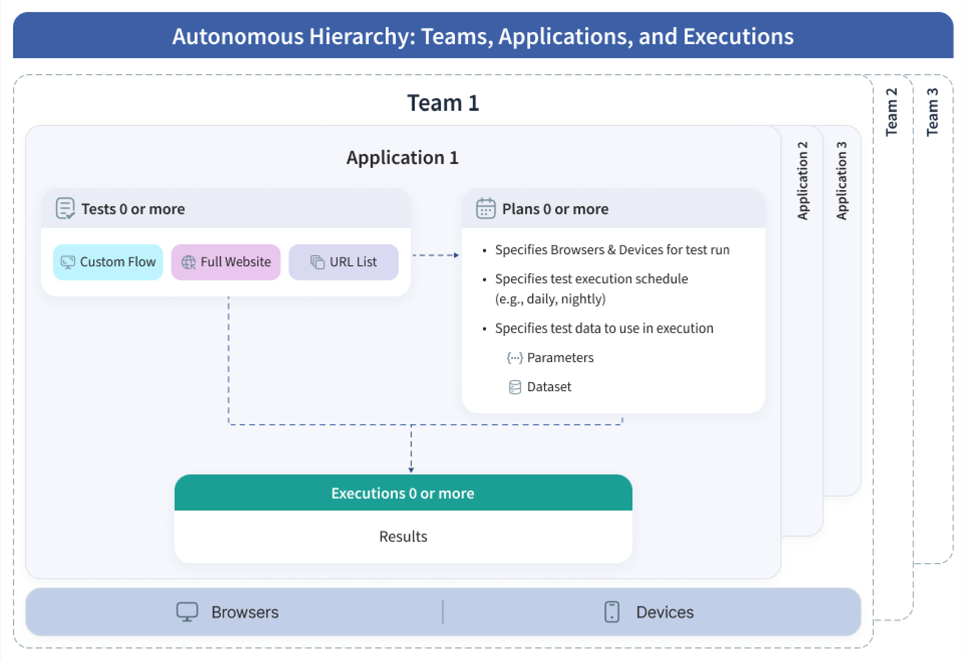 In Autonomous, tests are organized around a few core concepts. Each one represents a distinct part of how tests are created and managed. This section will guide you through each of these key ideas.