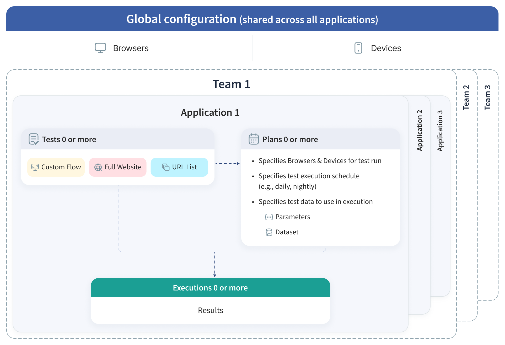 An application represents an AUT (application under test). This groups all tests that belong to the same website, application, or department that should be managed together.