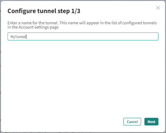 Note: For Windows, download the .exe file and run the command. For Mac and Linux, download the .zip file, unzip the file, and then run the command. The execution command is also available from the Tunnels tab after the tunnel is configured. On the Settings > Tunnels page, next to the name of the tunnel, click and select Copy execution command, then select the required operating system.