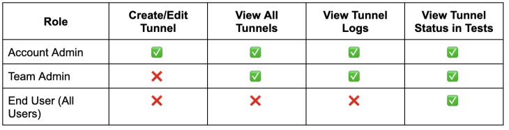 Access to tunnel-related actions and information is governed by user roles in Autonomous. This ensures that tunnel setup, maintenance, and monitoring are secure and appropriately delegated across teams.