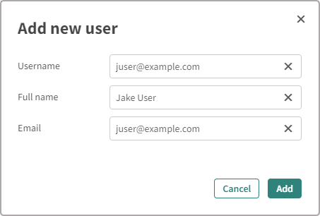 Enter a Username, Full name, and Email address and click Add. By default, the username is the same as the email address.
